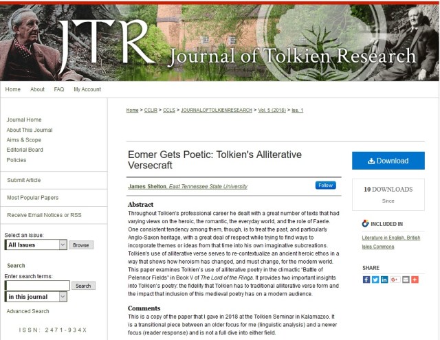 • Tolkien’s Golden Trees and Silver Leaves: Do Writers Build the Same World for Every Reader, Luke Shelton, Univ. of Glasgow